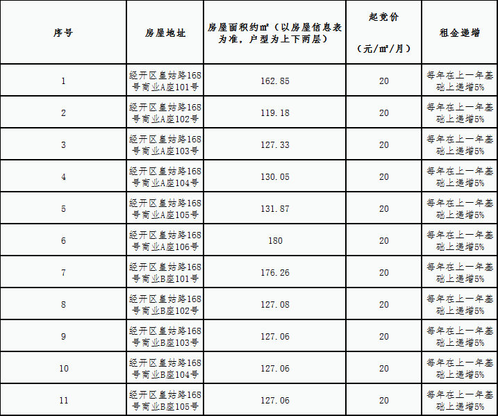 三、本次競拍每間商鋪租金起競價如下: