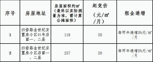 金世紀(jì)安置房小區(qū)店面租賃競拍規(guī)則