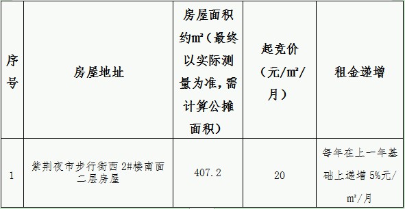 紫荊夜市1處二層房屋租賃競(jìng)拍公告