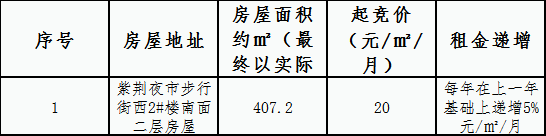 紫荊路步行街西2#二樓房屋租賃競拍公告
